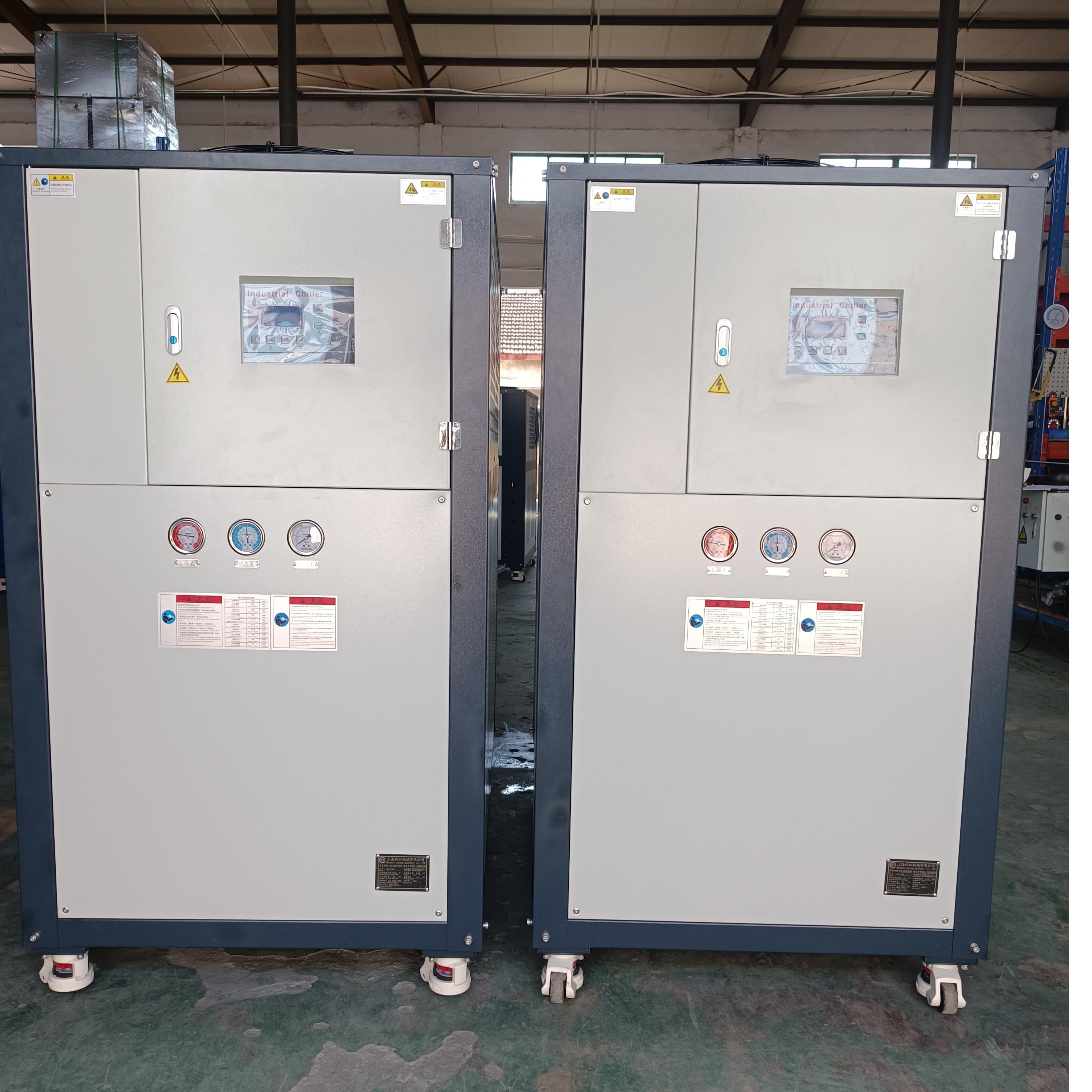 冷水机/冷油机厂,循环冷水机的选购过程,选择合适的机型非常重要,风冷式冷水机:在它机身内含有保温水箱和水泵,无需再另加冷却水塔来散热.安装和移动非常方便.但是它对工作环境要求较高,因为它是以热风循环来制冷的,如果安装车间的通风效果不好的话,会直接影响到制冷效果.水冷式冷水机:制冷量大,但需要另外加装冷却水塔,才能达到好的冷却效果。